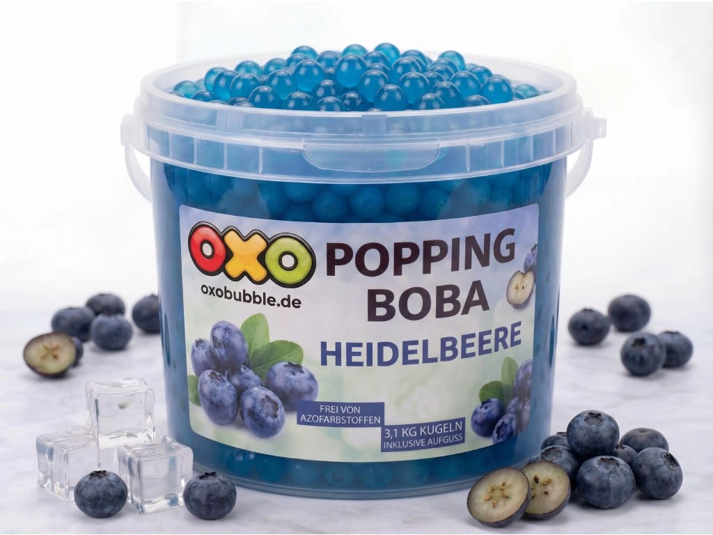 Blaubeer Popping Boba OXO bieten den intensiven, süßen Geschmack von Blaubeeren und ein ausgeprägtes fruchtiges Aroma, das jedes Bubble Tea Getränk perfekt belebt.
